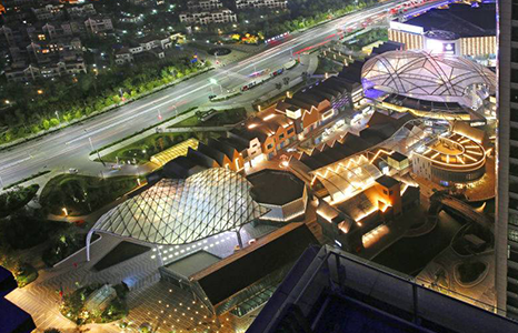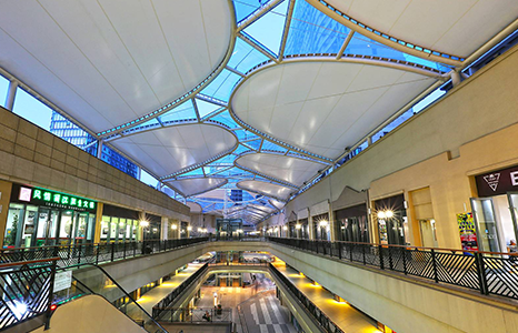 烟台景颐广场膜结构属于大型商业体屋顶罩棚,其充分利用了商业广场长廊空间和钢膜结构的技术优点(满足大跨度重量轻的要求),将整个商业体屋顶覆盖,采用PVC+ETFE+镂空组合效果,做到商业与自然的完美结合。